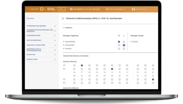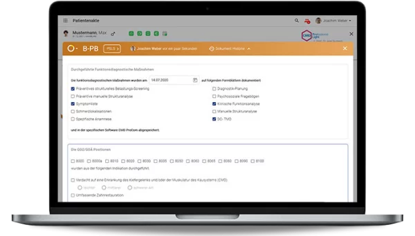 Die weltweit erste cloud-basierte Software zur praxisgerechten Funktionsanalyse. CMDpro erleichtert das diagnostische Vorgehen in der täglichen Praxis mit einem optimierten Formular- und Dokumentenkonzept, umfangreicher logischer Intelligenz und reduziert dadurch signifikant den Personaleinsatz.